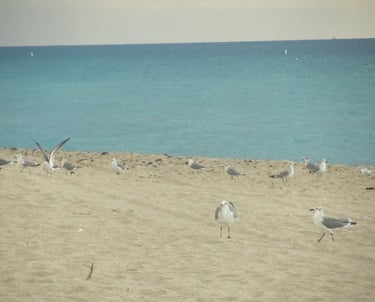 A arquitetura Art Déco de Miami Beach é um espetáculo à parte. As fachadas das lojas Häagen-Dazs, Starbucks e Ocean Pizza seguem esse estilo clean e harmonioso. Até uma simples caminhada na areia vira mágica. Primeiro, por conta do tapete que vai do calçadão até a praia. E depois, pelas gaivotas dançando nas ondinhas... uma cena inesquecível.