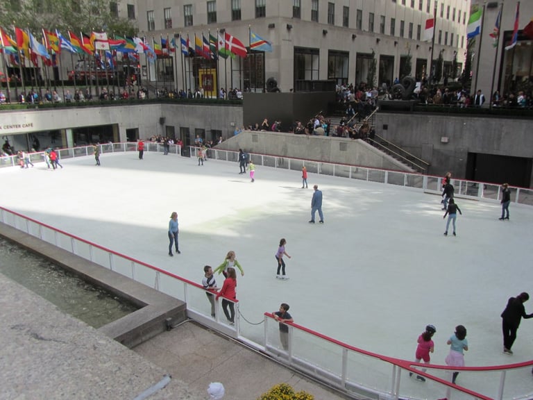 Nossa chegada em Nova York foi marcada por uma visita direta ao Empire State. Na época, era o grande destaque da cidade, já que ainda não havia tantas opções de vistas panorâmicas como hoje. O clima de outubro, encantador e agradável, também ajudou – fizemos muitas caminhadas. Seguimos então até a famosa pista de patinação do Rockefeller Center, que já estava funcionando a todo vapor.