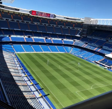 Descemos no Estádio Santiago Bernabéu, pois já havíamos comprado os ingressos para o tour. Espetacular!